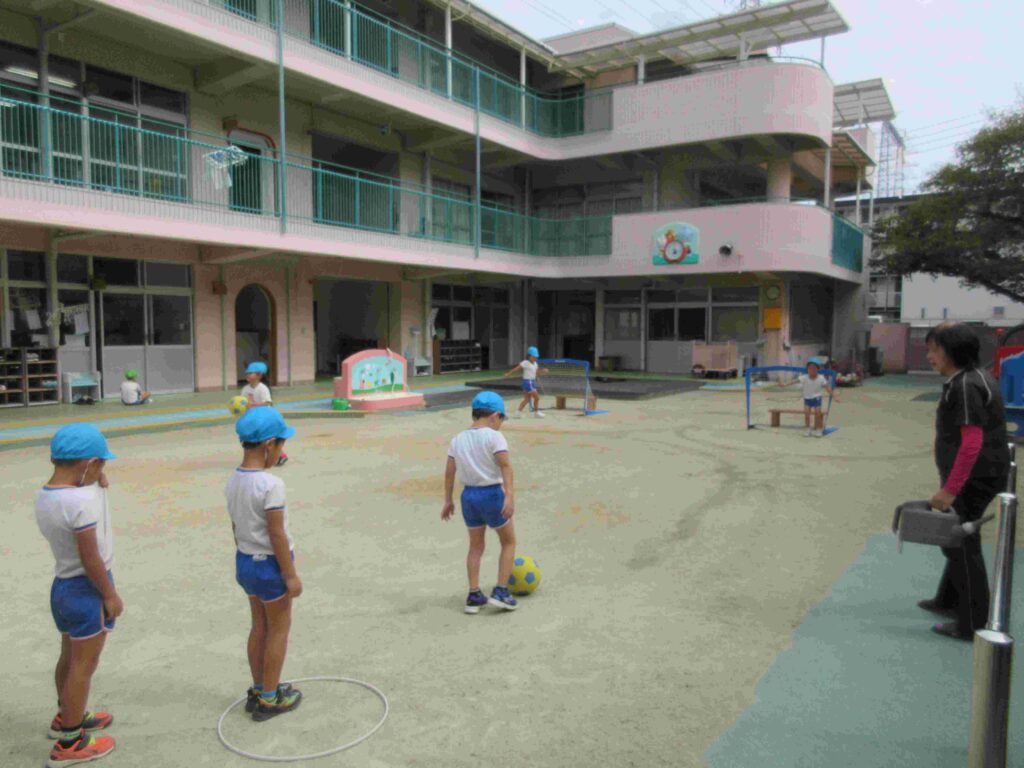 今週の保育:園庭遊びをしました(すみれ組)