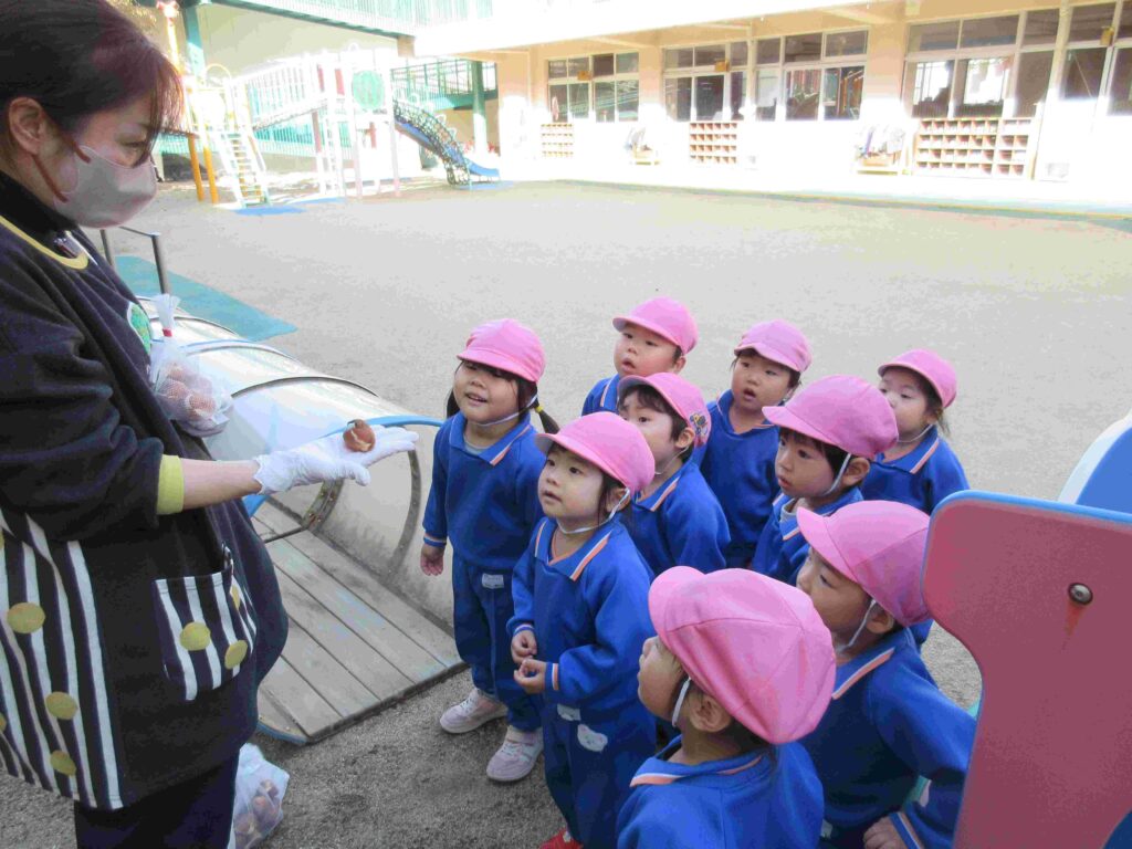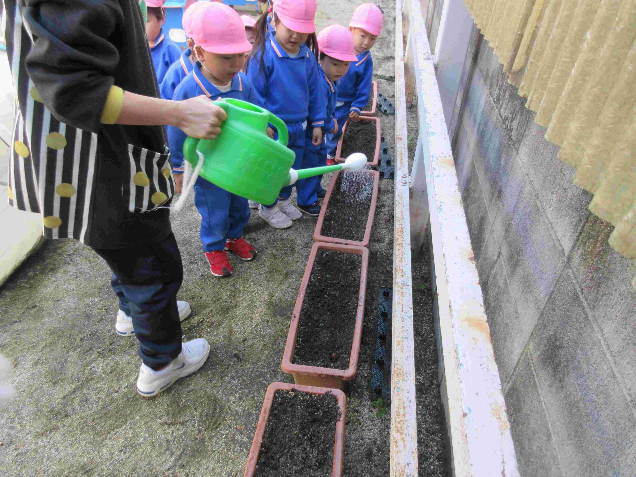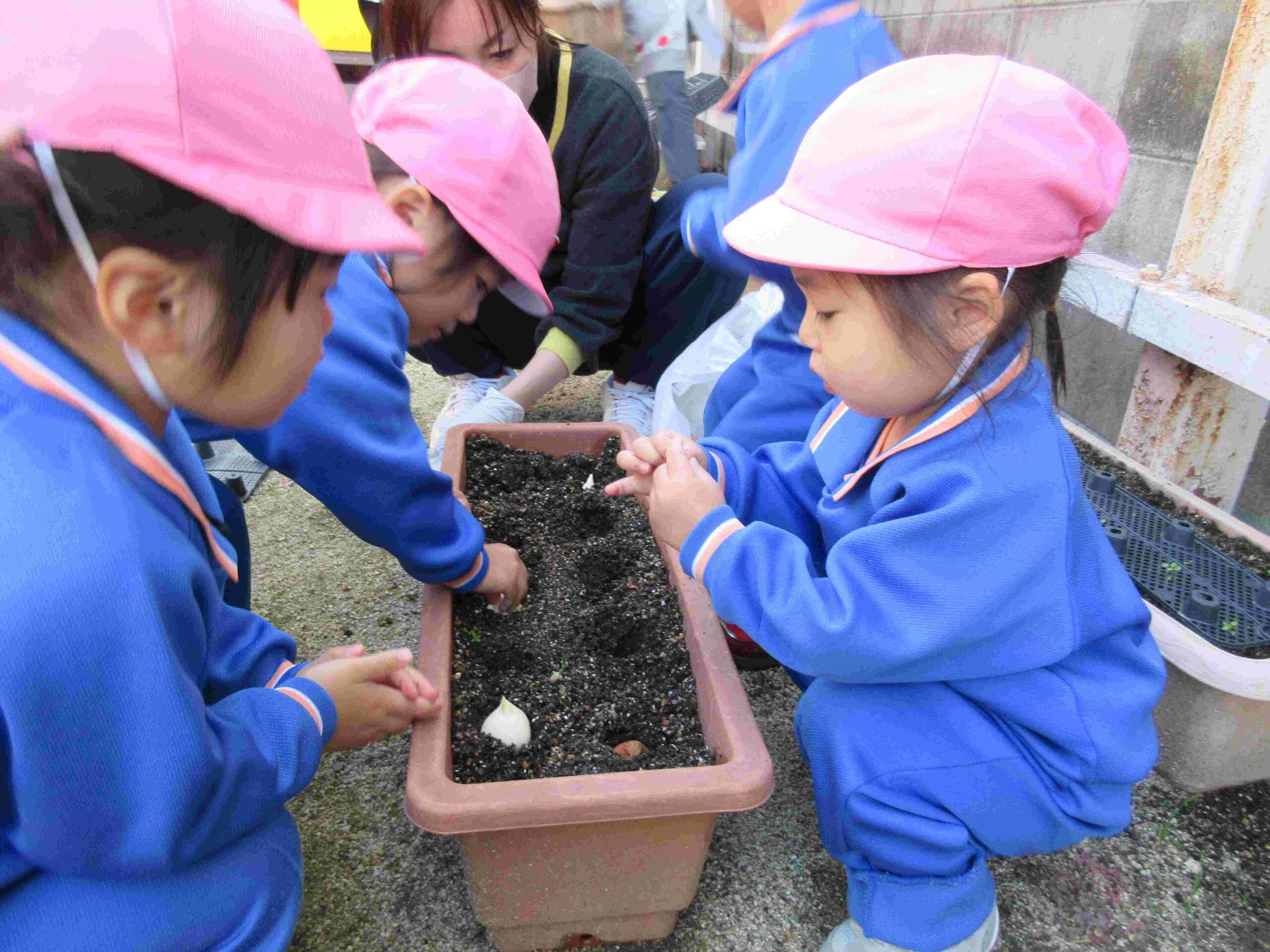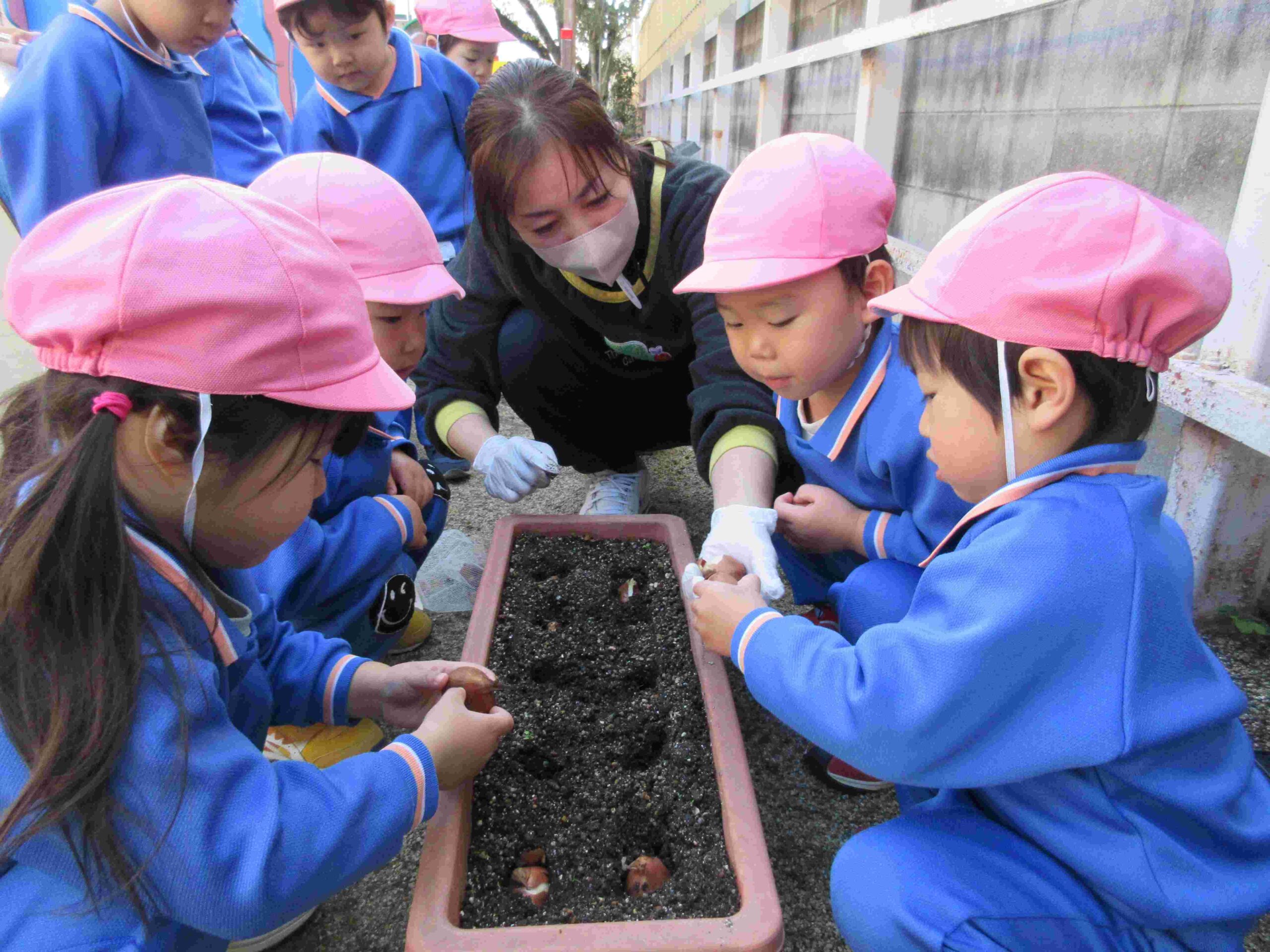 ちゅうりっぷの球根を植えました。球根を見せると「玉ねぎ?」と言っていましたが、「大きくなろうね」と優しく声をかけていました♬