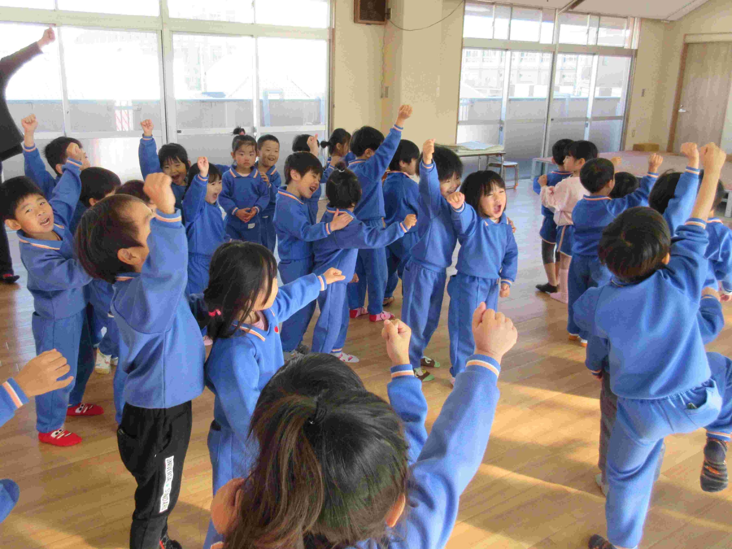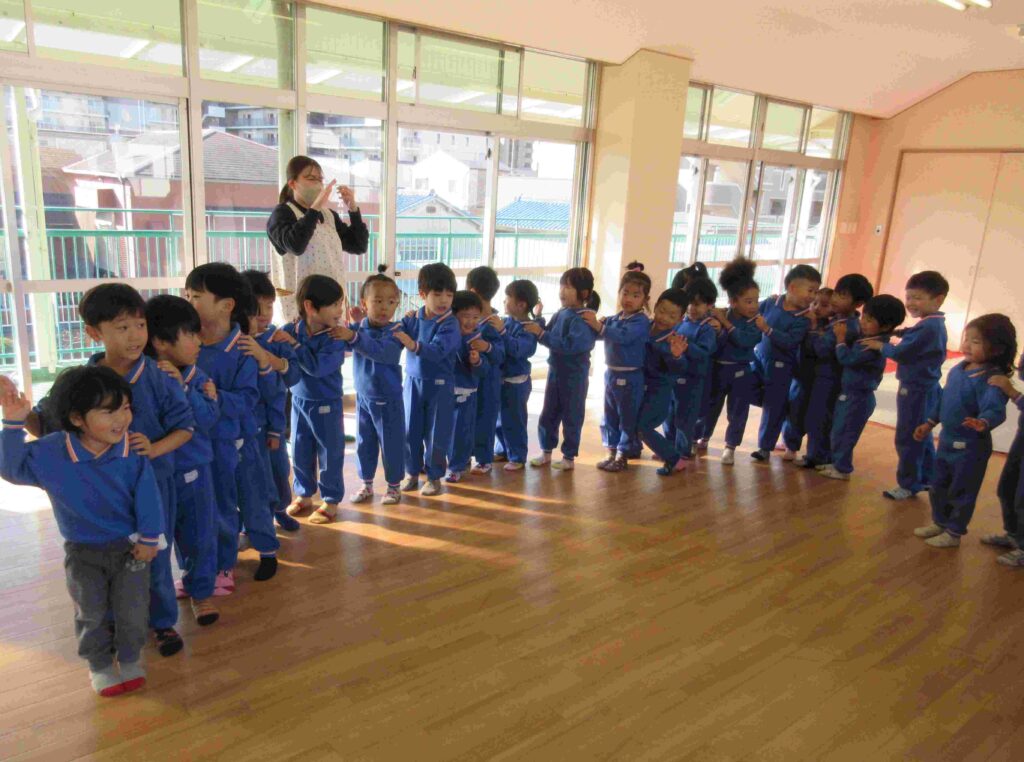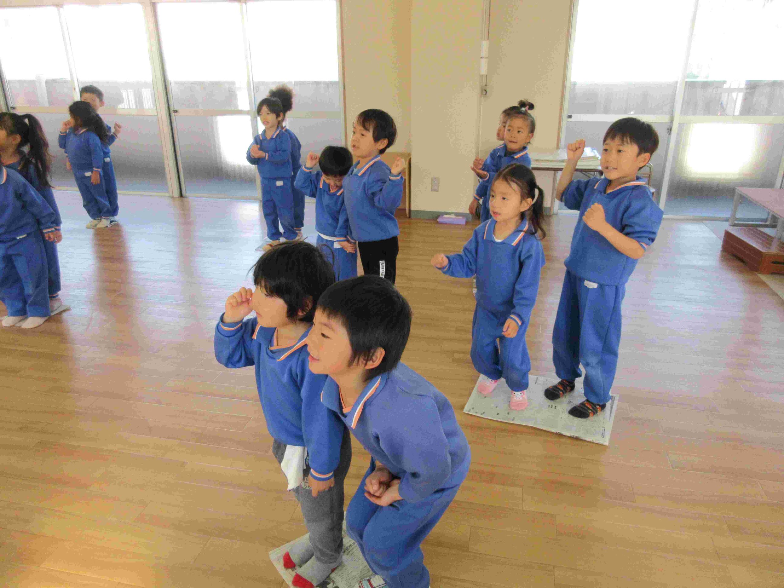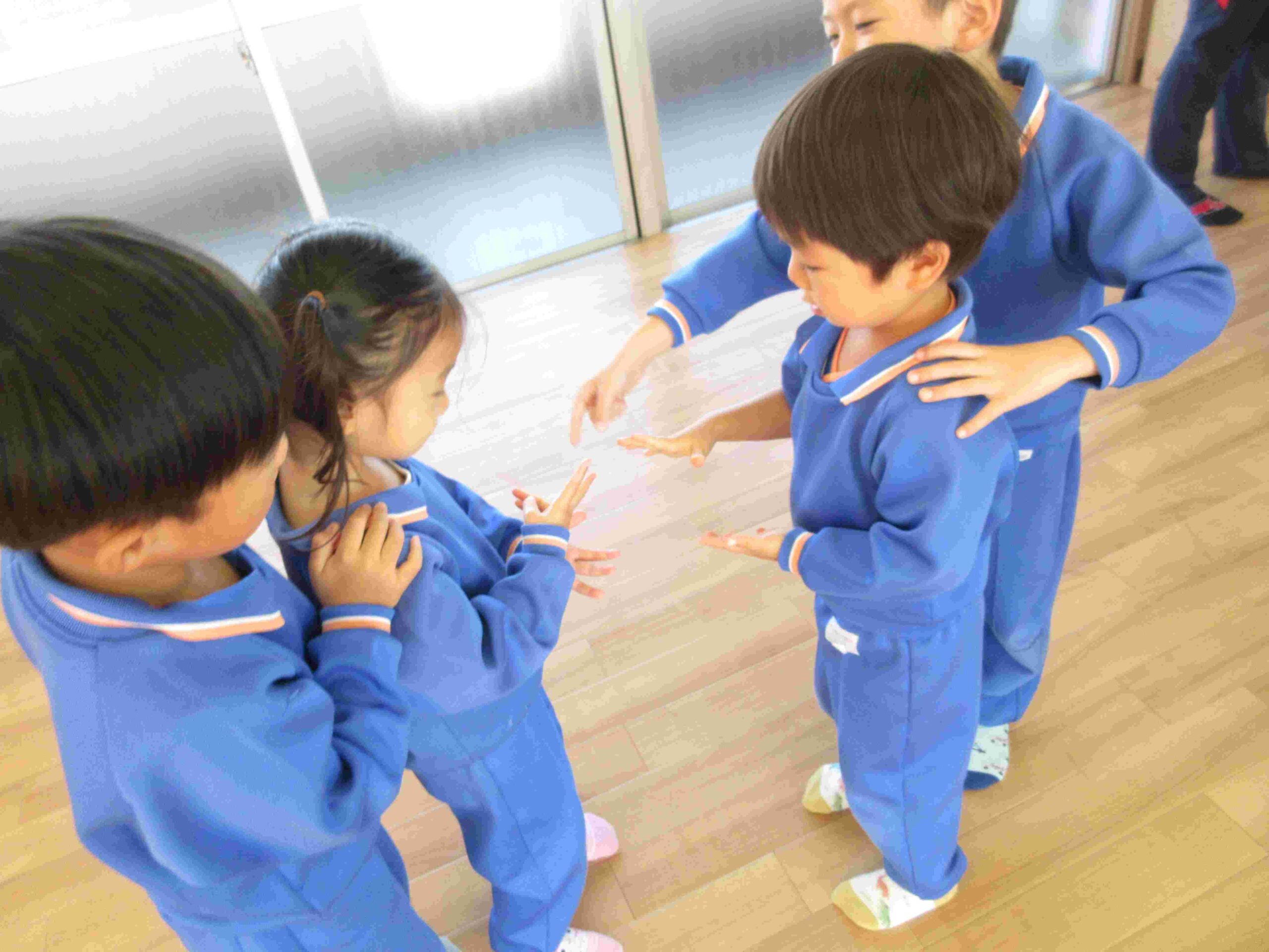 今日は3歳児さんが先頭になってじゃんけん列車をしました。