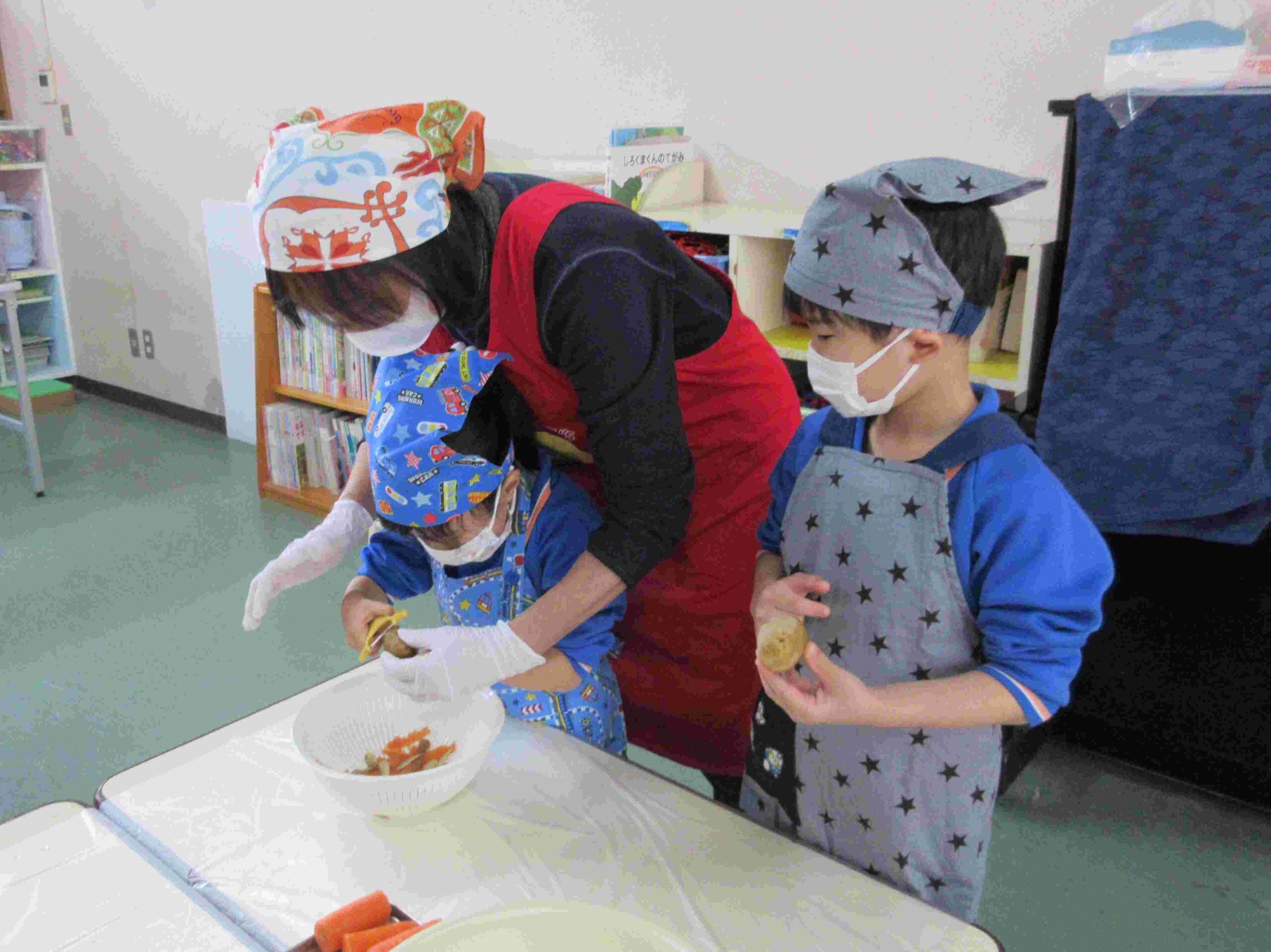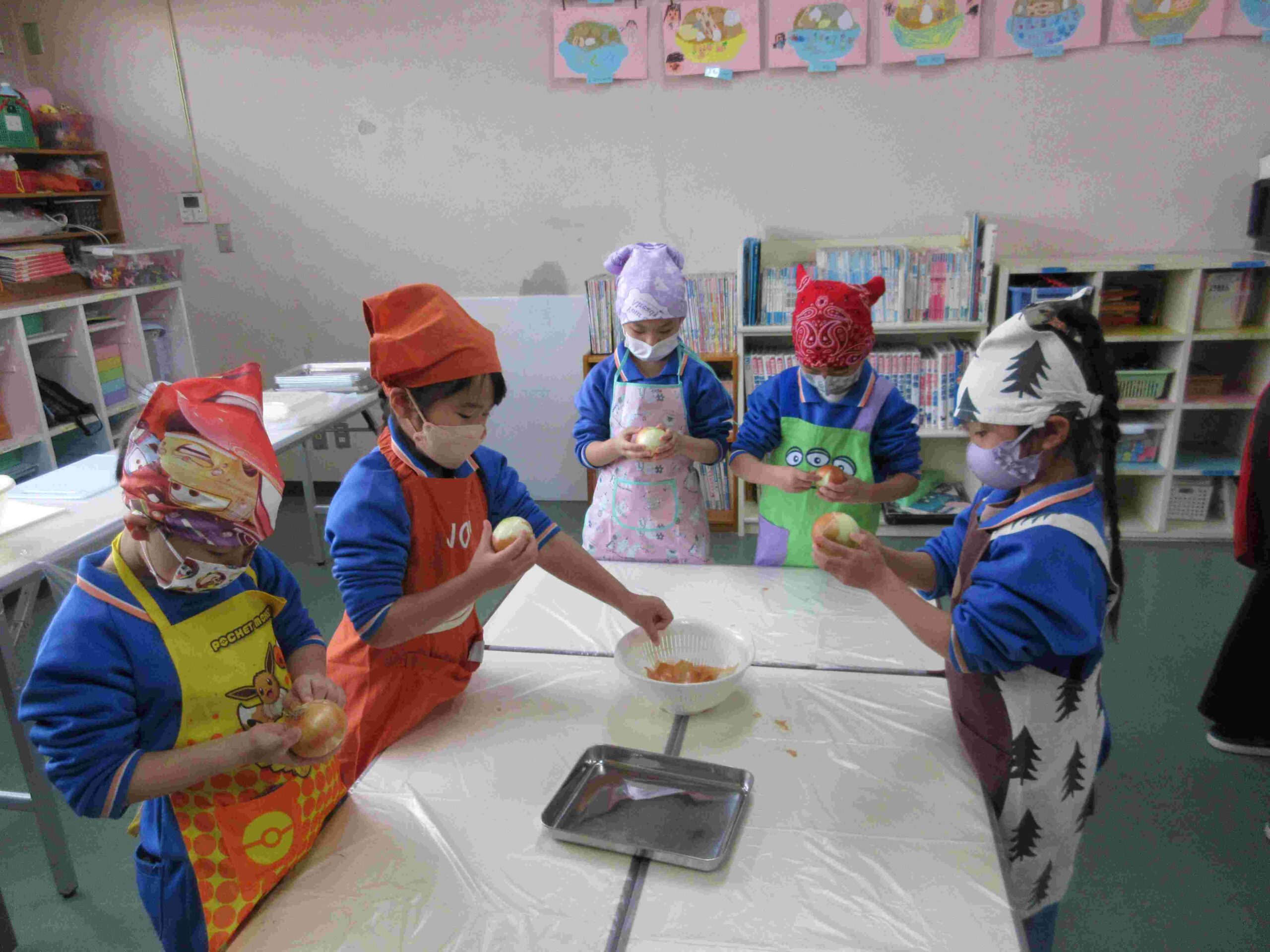 皮をむいたり包丁で切ったりしてカレーを作りました。